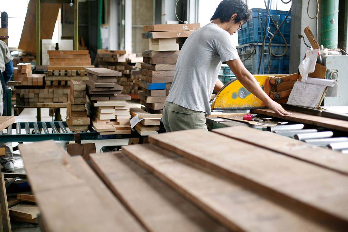 宮崎椅子製作所では、経験を積んだ職人たちの知恵と技を活かし、自社工場内で椅子づくりのほぼ全てを製作しています。そうすることで、ユーザーのオーダーにきめ細かくお応えしたいと考えます。
