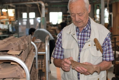 デンマークのデザイナー、カイ・クリスチャンセンさんとの交流は、カイさんがデザインした椅子「No.42」と、ソファ「Paper Knifeシリーズ」の復刻生産を宮崎椅子製作所が行うことになった2008年から始まりました。そして、製品チェックのために工場を初めて訪ねてくれたのは2010年。当時、カイさんは80歳を超えていました。