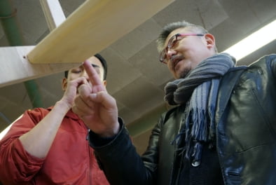 宮崎椅子製作所を初めて訪ねてくれたとき、村澤さんが最初にしたことは工場を見学すること。工場オタクを自称する村澤さんは、ものづくりの現場に重きを置きます。デザインとは、開発メンバーとの対話やつくる現場から紡ぎだすもの、というのが持論です。