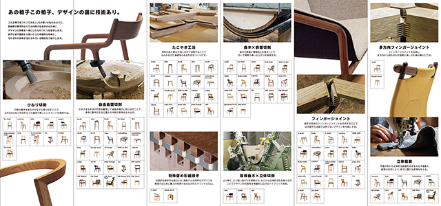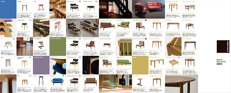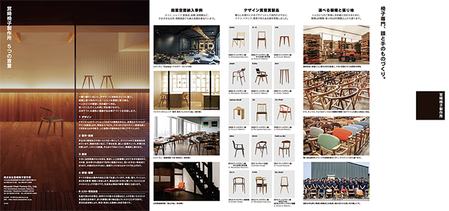 全製品を一覧できるジャバラ折りのカタログと、宮崎椅子製作所のモノづくりの考え方と技術をご紹介するパンフレットはこちらでご覧いただけます。