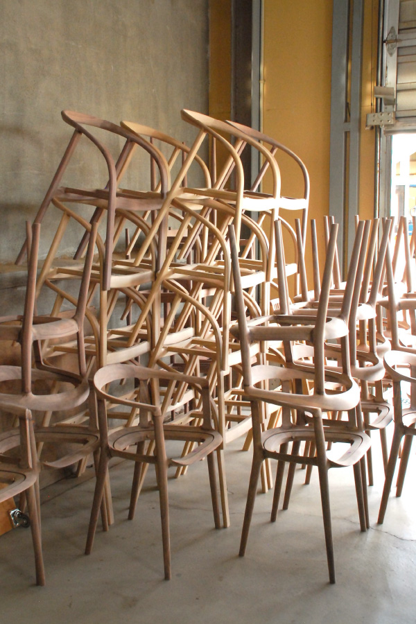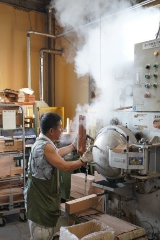 また、高温の水蒸気とプレス機による曲木加工もしています。