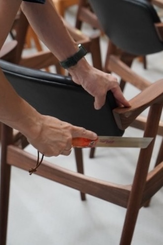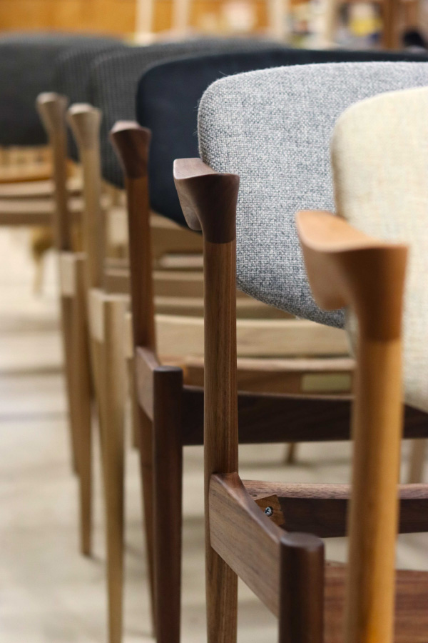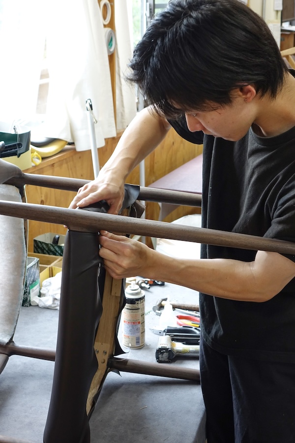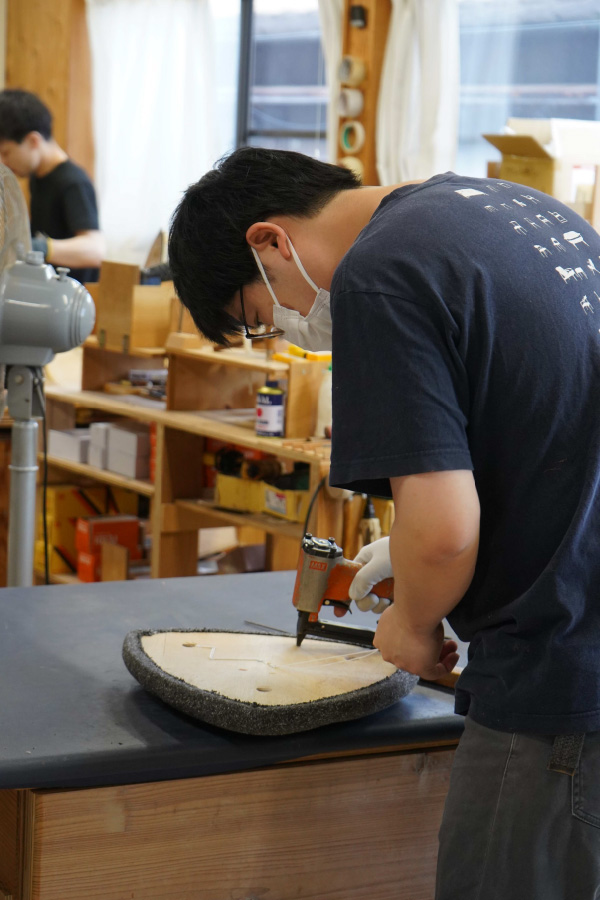 椅子張りは、座り心地と外観を大きく左右する重要な工程になります。いかに美しく、座り心地の良い椅子を仕上げるか。手先の感覚を磨きながら、日々丁寧な仕事を心がけています。