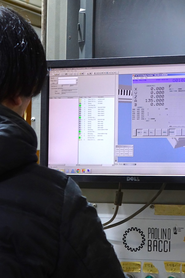 木地場は、新鋭のCNC工作機械と年代物の機械を駆使して形をつくり出します。機械加工で生じた刃物跡やバリは研磨工程で落としていきます。人の手によって一つ一つ丁寧に磨き上げ、細部までこだわって均一に仕上げています。